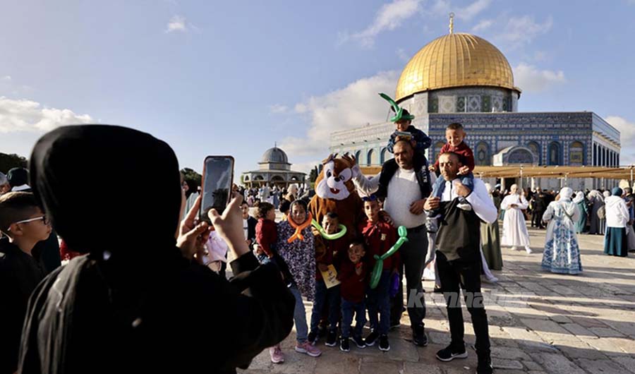 Yaklaşık 120 bin Müslüman, Ramazan Bayramı namazı için sabah saatlerinde mukaddes mabedimiz Mescid-i Aksa'da saf tuttu.