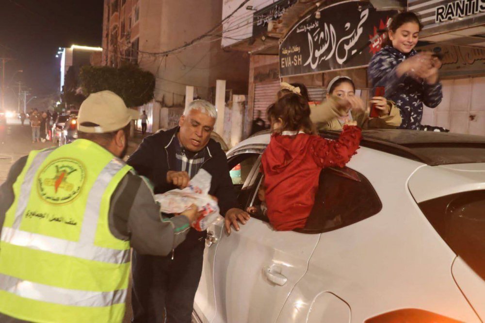 Saldırı sonrasında Filistinliler kutlama yaptı, tatlı dağıtıldı.