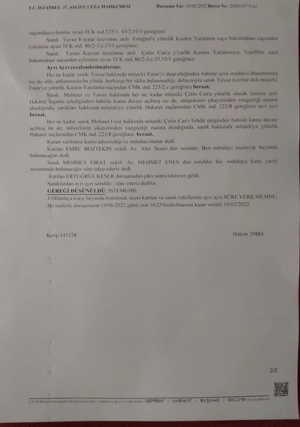 Davanın karar duruşması 14 Haziran'da görülecek. Mehmet Fırat 1,5-5 yıl hapis istemiyle yargılanacak.