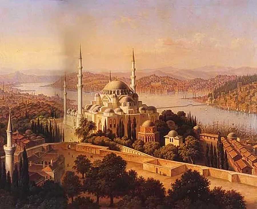 1695 yılının Osmanlı’sını dolaşmaya karar verdim ve 78 yıl önce Mimar Sedefkâr Mehmed Ağa tarafından inşa edilen Sultan Ahmet Camii’nin geniş bahçesinden seyahat etmeye başladım. Klasik Osmanlı mimarisi üslubunda inşa edilen cami aynı zamanda bir külliye. Hünkâr kasrı, çeşme, sebil, imaret, darüşşifa, hamam, darülkurra, türbe, medrese, sıbyan mektebi ve dükkanlarla örülü büyük bir mekân. İlk zamanlar Yeni Camii ismini almış olsa da 1665 yılında yapılan Yeni Camii dolayısıyla ismi tekrardan sultanın adını almış. Hatta Sultan Ahmet, caminin yapımında da yer almış, kendisi de taş taşımış.