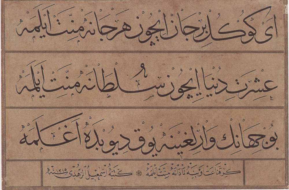 Osmanlı en çok hat sanatına değer vermiş ve en çok onunla iştigal etmiş. İhtiyar anlatırken bunu daha iyi anlıyorum. Her devrin kendine mahsus hattatları mevcut. Ve bu hattatlar eserleriyle, geliştirdikleri hat sanatıyla, farklı üslup ve istidadları sayesinde gelecek devirlerde hat sanatını daha ileriye taşıyacak ekoller oluşmasını sağlamış. Bu yüzyılın mektebinin de İsmail Zühdü mektebi olduğunu dile getiriyor ihtiyar.