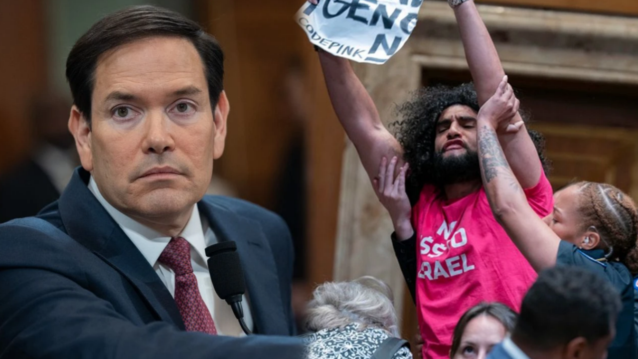 Oturum devam ederken, salonda bulunan ve adının Sumer Mubarak olduğu belirtilen Amerikalı Filistinli gösterici, "Gazze'deki soykırımı durdurun" çağrısıyla Rubio'yu protesto etti.