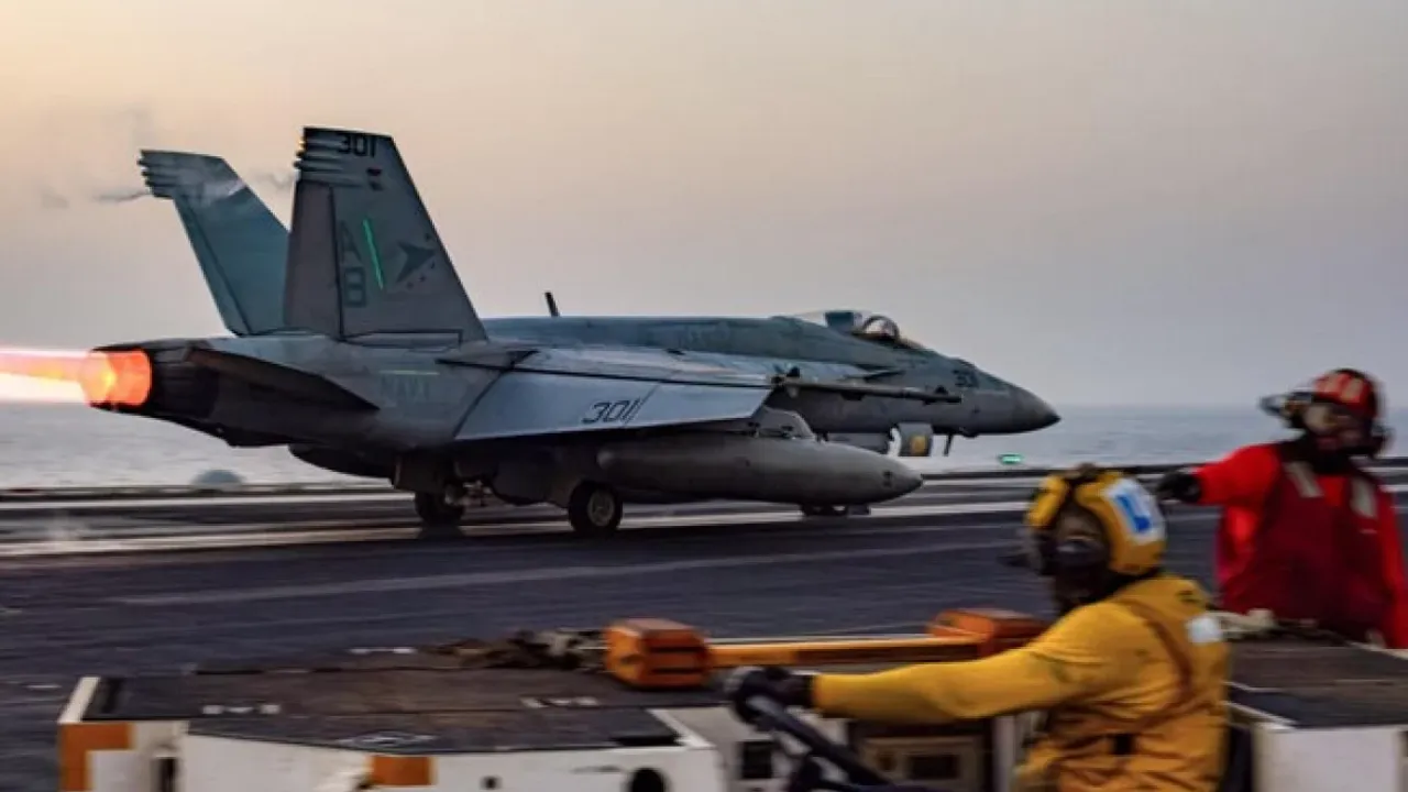 ABD'ye ait 60 milyon dolar mahiyetindeki F/A-18E Super Hornet savaş jeti suya düştü.