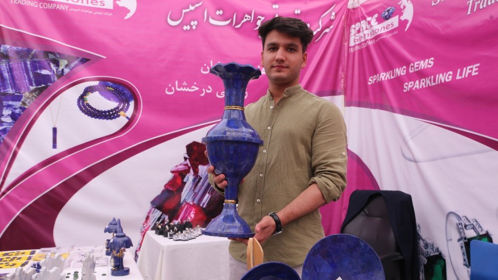 Lacivert taşından yapılan vazo, küllük, tespih, tabak, kolye, küpe, satranç takımı başta olmak üzere çeşitli biblo ve süs eşyaları fuarın en önemli ürünlerini oluşturuyor.