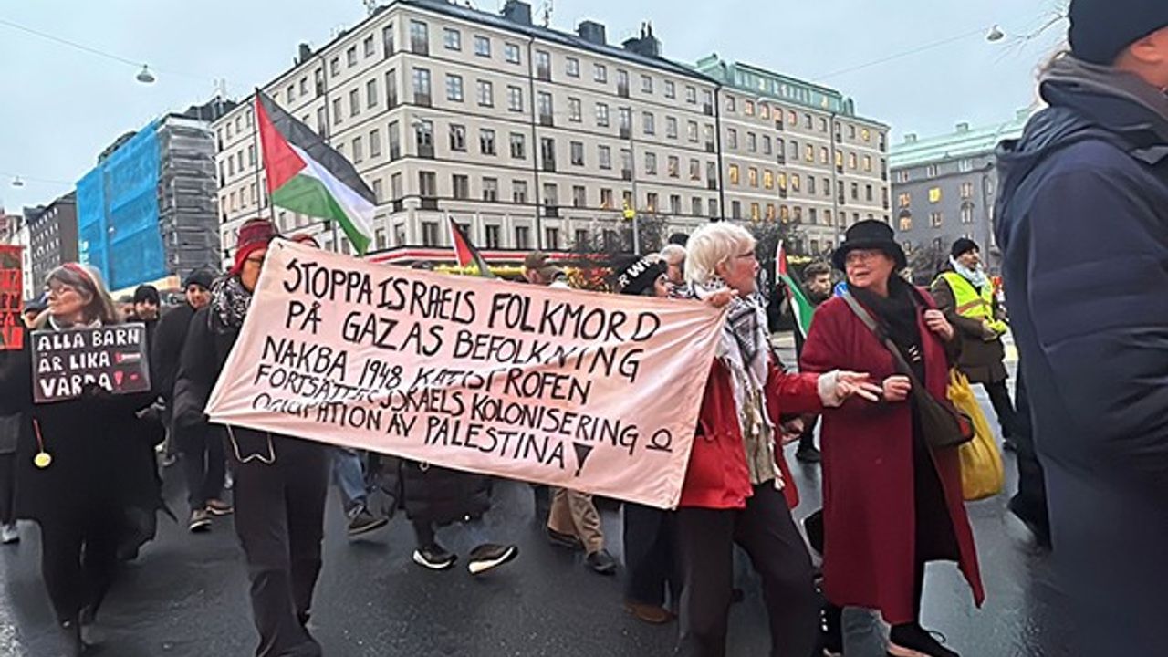 "Sivilleri bombalamak meşru müdafaa değil. Soykırıma hayır de", "Kurtuluşa erişene kadar direniş", "Filistin için ayağa kalkın", "Gıda kısıtlamasına son verilsin" ve "İsrail barış anlaşmasına uysun" yazılı dövizler taşıyan göstericiler, İsveç hükümetini terörist İsrail'e karşı kapsamlı askeri ambargo uygulamaya davet etti. Göstericiler İsveç Parlamentosu önüne kadar yürüdü.