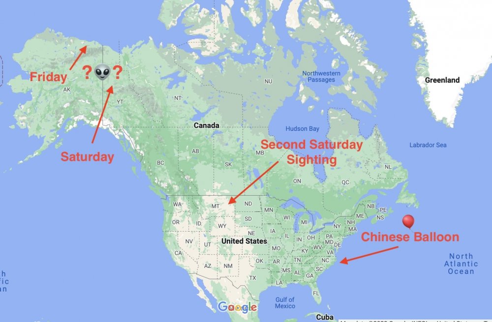 31 Ocak'tan itibaren ABD üzerinde görülen gözetleme balonundan sonra, 4 Şubat'ta Latin Amerika üzerinde uçan ikinci bir balon tespit edilirken, Cuma günü Alaska ve Cumartesi günü Kanada üzerinde kimliği belirsiz başka cisimler düşürüldü.