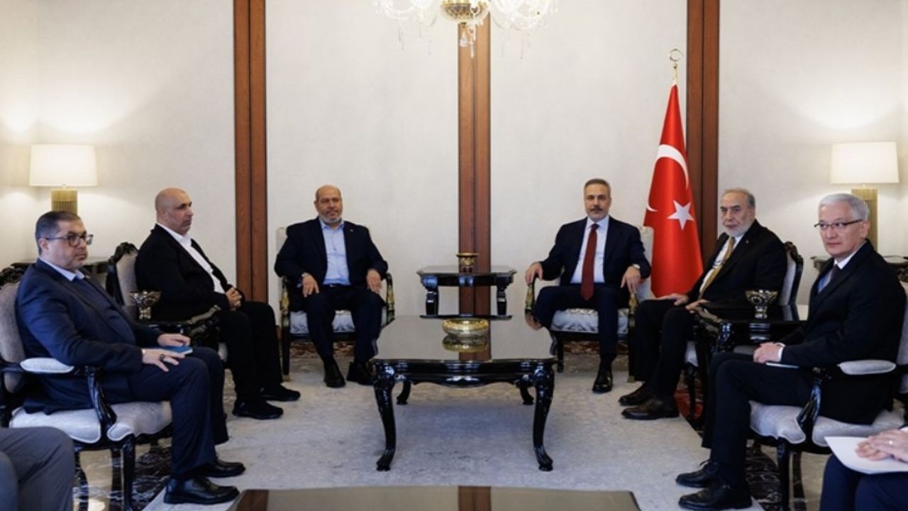 Dışişleri Bakanı Hakan Fidan, Hamas Siyasi Büro Üyesi Halil el-Hayye başkanlığındaki Hamas heyetini Ankara'da kabul etti. Dışişleri Bakanlığı kaynaklarından edinilen bilgilere göre, görüşmede Gazze’de derinleşen insani kriz ve direnişin siyasi süreci ele alındı.