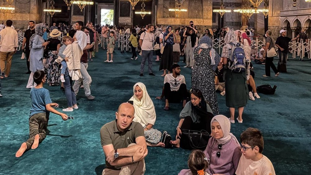 Caminin içinde yerli ve yabancı turistler ön saflara kadar gezerek fotoğraf çektirmesi de Müslümanların ibadetlerini engelliyor. Caminin içinde yüksek sesle konuşan, çorapsız yere basan, ayakkabıyla içeri girenler de Ayasofya’nın ruhuna aykırı hareket ediyor.