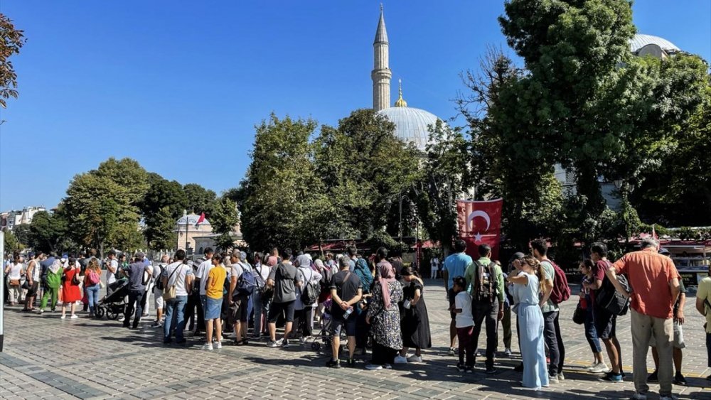İbadete açılan Ayasofya Camii’nde namaz kılmak isteyenler, yerli ve yabancı turistlerin oluşturduğu uzun kuyruklar sebebiyle dışarıda beklemek zorunda kalıyor. Cami önündeki kuyruklar da gün boyu sürüyor. Bundan dolayı Ayasofya Camii’nin girişlerinden biri sadece namaz kılacak olanlara tahsis edilmesi gerekiyor.