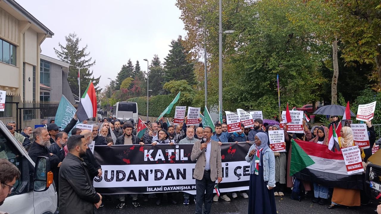 Sudan’ın Faşir şehrinin Hızlı Destek Kuvvetleri (RSF) tarafından ele geçirilmesinin ardından bölgede yaşanan katliam ve sivil ölümleri üzerine Birleşik Arap Emirlikleri’nin (BAE) İstanbul’daki konsolosluğu önünde protesto düzenlendi. İslami Dayanışma Platformu tarafından organize edilen eyleme Türkiye’de yaşayan Sudanlılar ve çok sayıda vatandaş katıldı. Protestoda “Katil BAE Sudan’dan elini çek”, “Sudan’da Katliam ve İşgal’in Faili RSF, Planlayıcısı BAE ve İsrail”, “El-Faşir’de İşgal ve Katliamın Sponsoru Zalim Nahyan Hesap Verecek” yazılı dövizler ve pankartlar gösterildi. Gösteri boyunca “Sudan halkı yalnız değildir”, “Siyonist uşağı katil Emaret”, “Down down UAE”, “Zalim Nahyan hesap verecek”, “Katil BAE Sudan’dan defol” sloganları atıldı ve tekbir getirildi.
