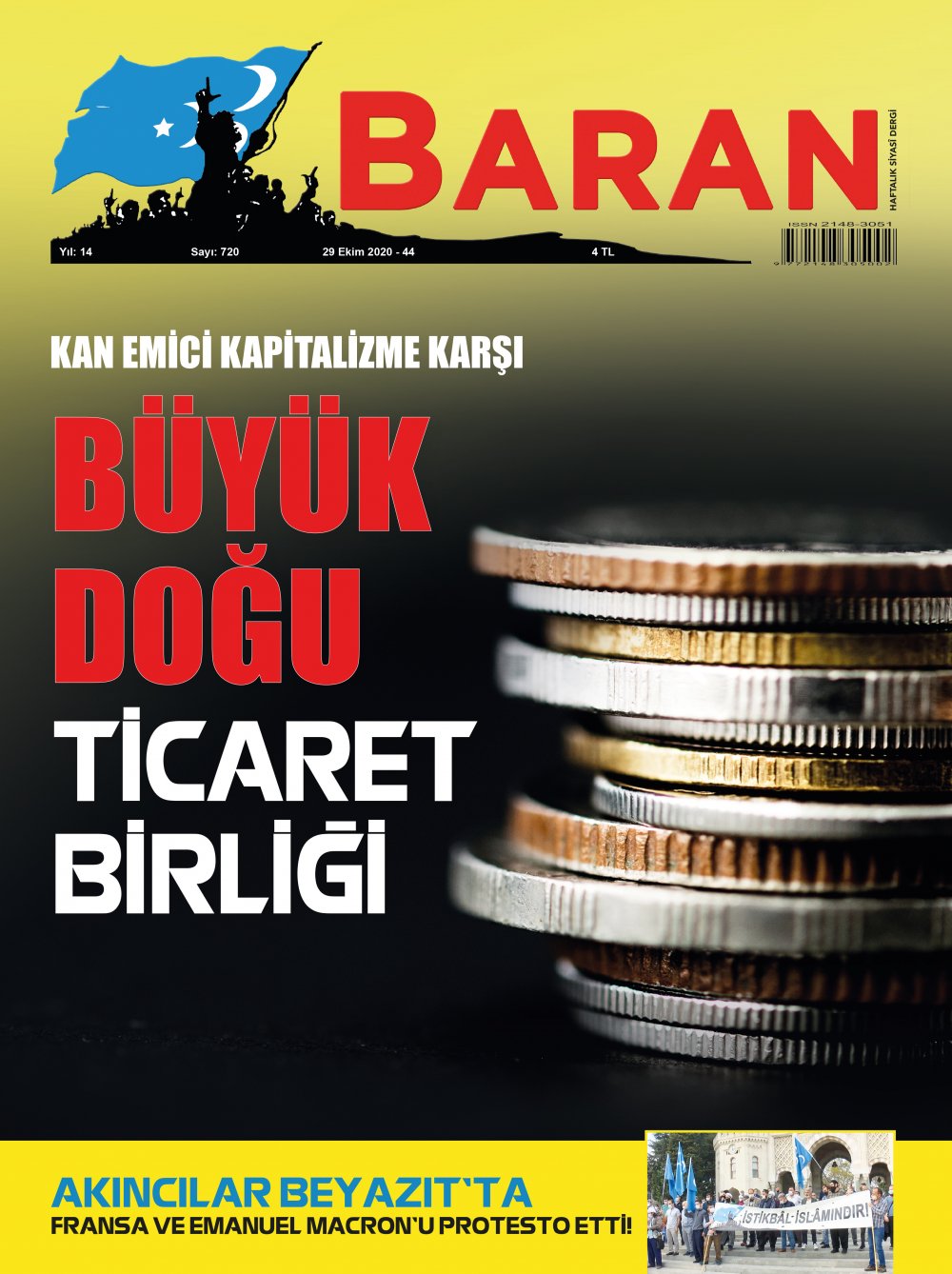 Bu çerçevede manşetimiz: “Kan Emici Kapitalizme Karşı Büyük Doğu Ticaret Birliği!” Kapak mevzumuzu “Türk Altın Lirası’ndan Sonraki Adım: Büyük Doğu Ticaret Birliği” başlıklı yazısında işleyen Ömer Emre Akcebe, teklif ettiğimiz Büyük Doğu Ticaret Birliği’ni zaruret hâlinde dayatan şartları işaretledikten sonra birliğin temel şartlarını ve üye ülkelere karşılıklı olarak sağlayacağı faydalardan ve birlik çerçevesinde yapılabilecek muhtelif müşterek adımlardan bahsediyor.