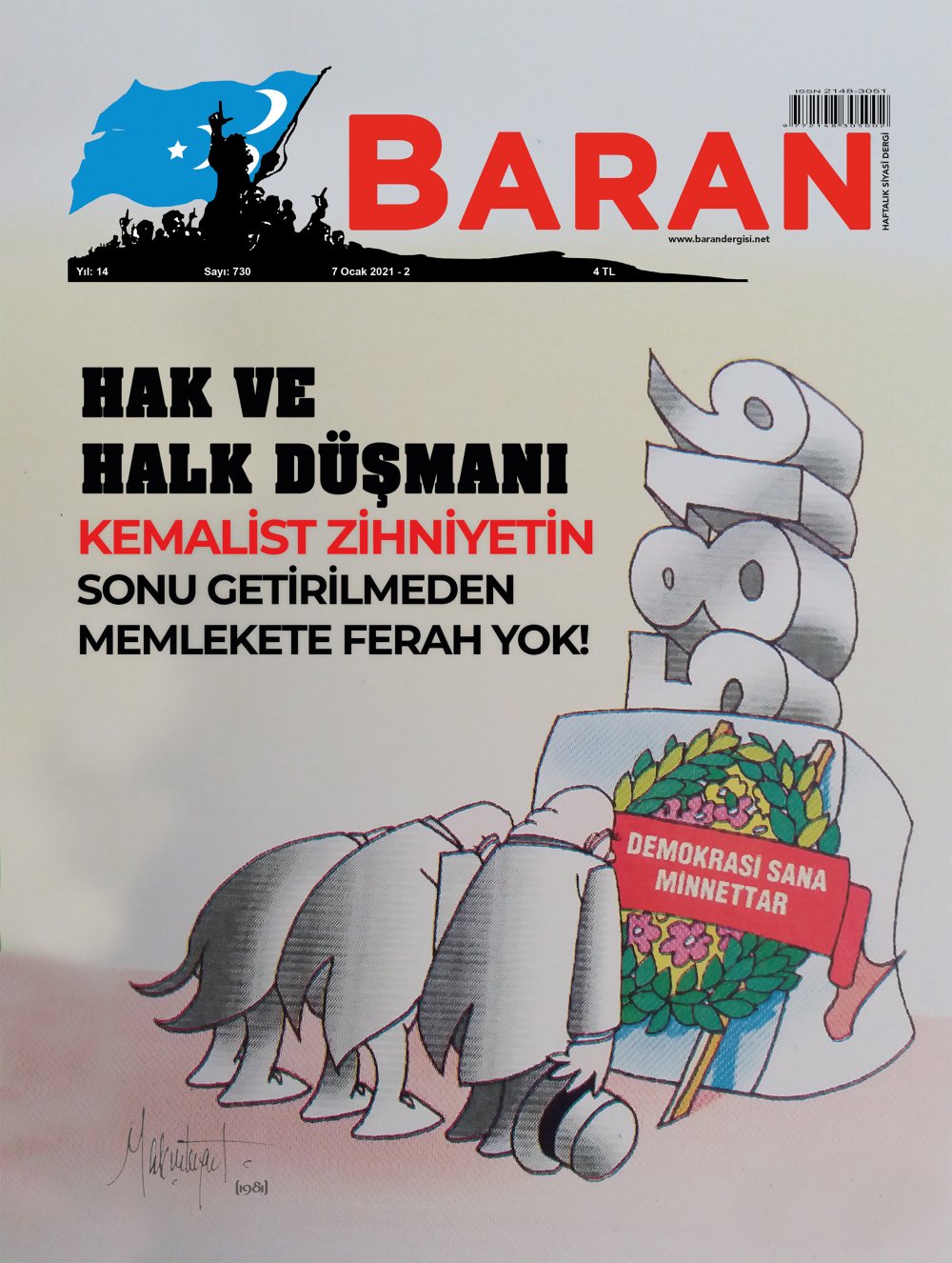 Kapağımızda bu meseleyi işlerken çizerimiz Yalçın Turgut Balaban’ın 1981 yılında kemalizmi tenkid ettiği çalışmasıyla birlikte “Hak ve Halk Düşmanı Kemalist Zihniyetin Sonu Getirilmeden Memlekete Ferah Yok!” manşetini attık. Kapak mevzumuzu “Millî Ruha Musallat Oligarşi Loncası: CHP” başlıklı yazısında işleyen Ömer Emre Akcebe, “İçerideki ve dışarıdaki şer odaklarıyla mücadele her seferinde milletin omuzlarında kalmaya devam mı edecek?” diye soruyor.