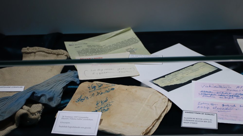 Sergide Üstadın Osmanlıca yazdığı eseri, elbisesi, bastonu ve fotoğrafları yer alıyor.