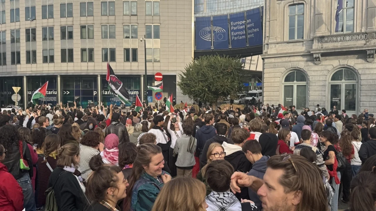 Brüksel'de dünyanın farklı yerlerinden milletvekilleri, siyasi parti ve kamu kuruluşu temsilcileri, Birleşmiş Milletler (BM) raportörleri ve etkili birçok ismi bir araya getiren Küresel Sumud Parlamenterler Kongresi'nin katılımcıları, programın sona ermesinin ardından AP'nin bulunduğu Lüksemburg meydanına yürüdü.