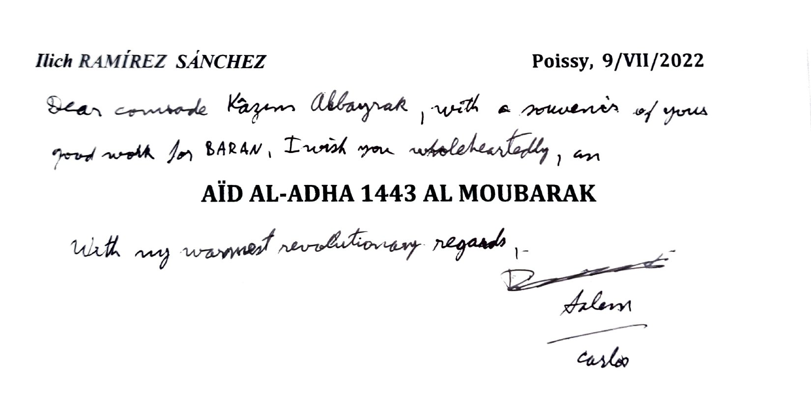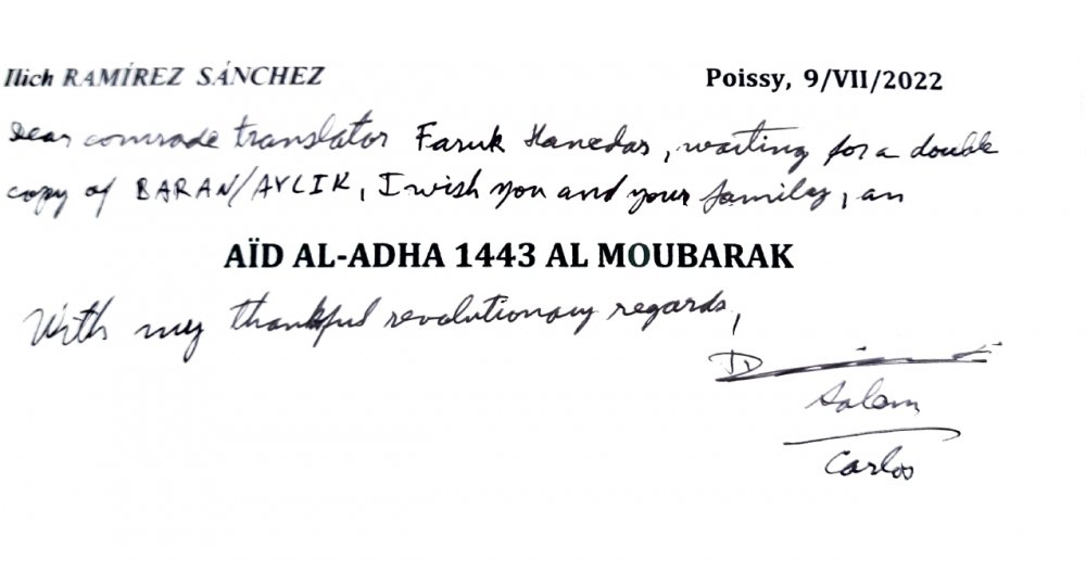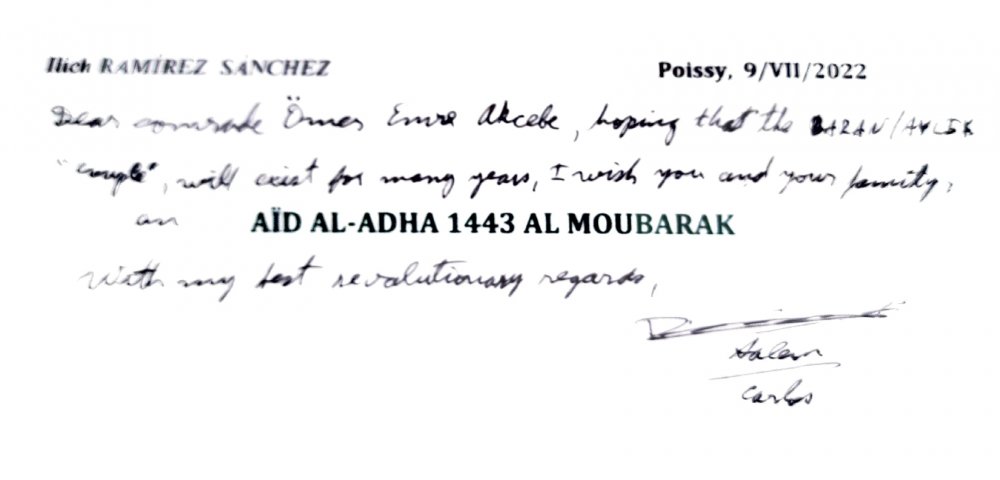 Salim Muhammed ya da daha çok bilinen adıyla Çakal Carlos'un, Fransa’da bulunduğu cezaevinden yazarlarımızın ve tüm Müslümanların bayramını tebrik ettiği kartları sizlerle paylaşıyoruz: