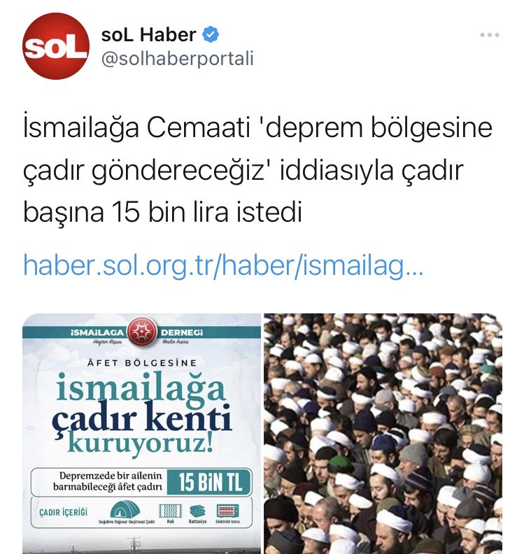 Bizans tohumu Sol Haber de Müslümanların deprem bölgelerine çadır toplamasını hedef aldı ve alçaklığını gösterdi.