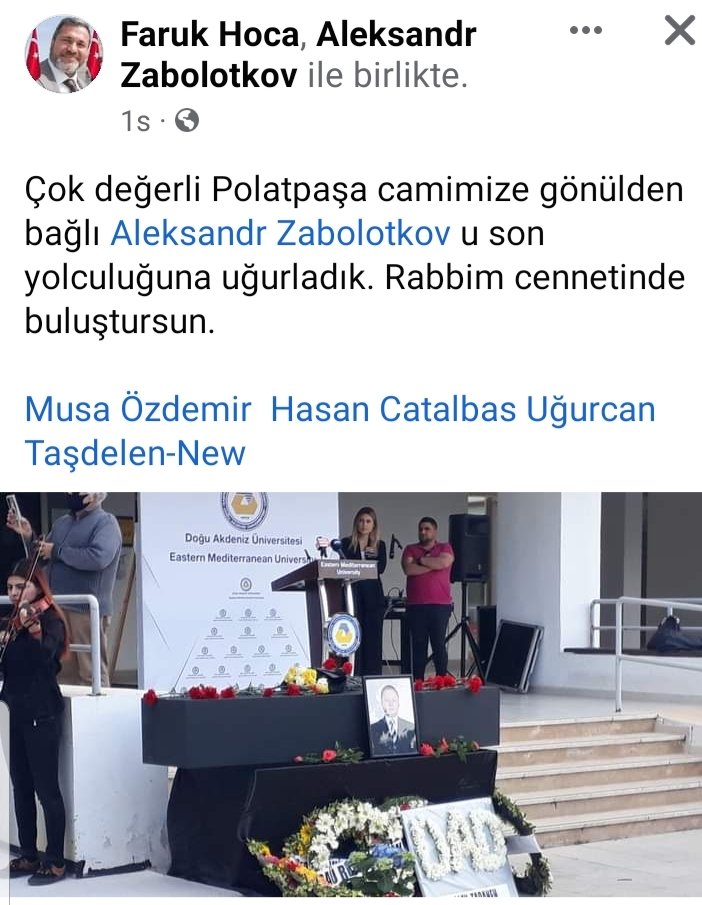 Kuzey Kıbrıs Türk Cumhuriyet'indeki Fazıl Polat Paşa Camii İmamı, Faruk Seçkin isimli şahıs Doğu Akdeniz Üniversitesinde Güzel Sanatlar Bölümü öğretmeni olan Hristiyan Aleksandr Zabolotkov'un ölümü vesilesi ile "Dinlerarası Diyalog" çalışmalarına hizmet eden bir paylaşım yaptı.