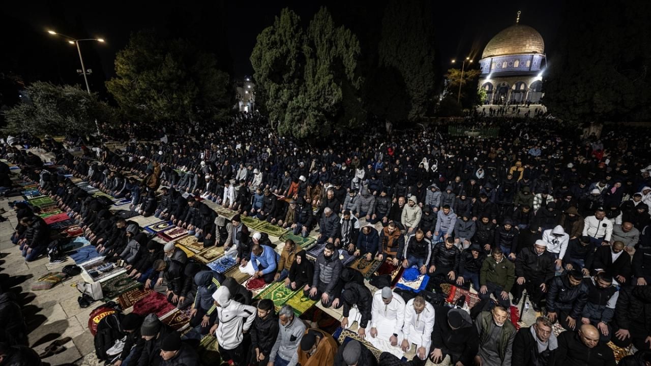 Tüm kısıtlamalara rağmen Mescid-i Aksa'da 60 bin Müslümanın yatsı ve teravih namazlarını eda ettiği belirtildi.