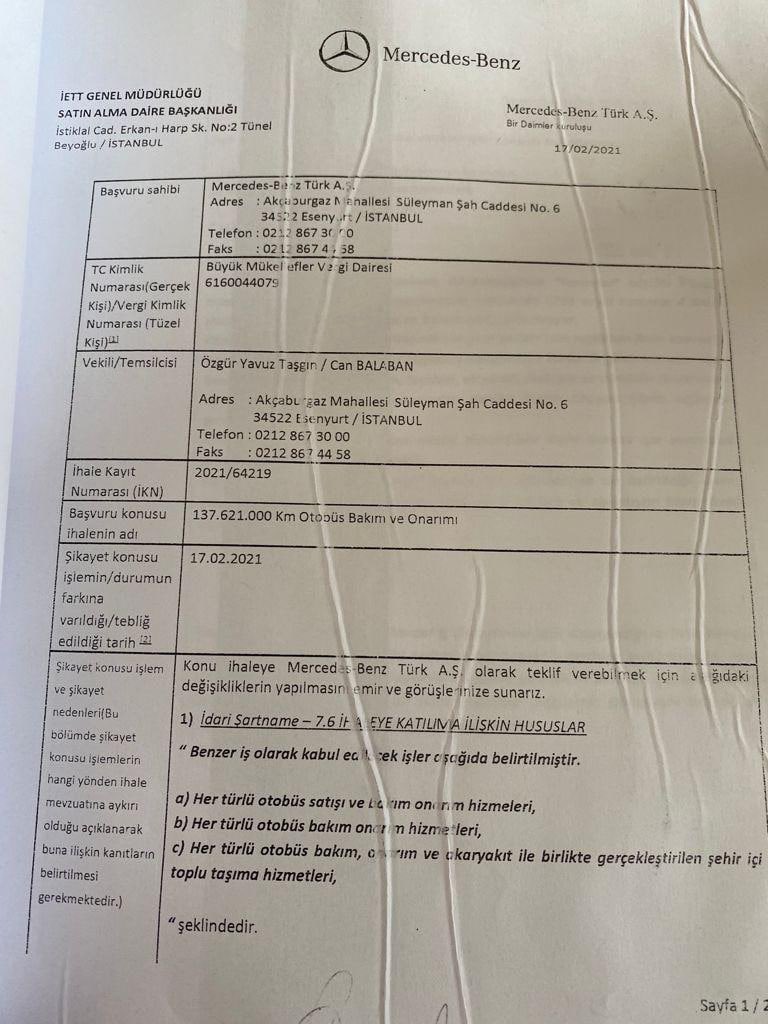 İstanbul Büyükşehir Belediyesi (İBB) Başkanı Ekrem İmamoğlu’nun İçişleri Bakanı Süleyman Soylu’nun, İETT’nin otobüs alımında Mercedes-Benz Türk’ün ihaleye alınmadığı iddiasıyla ilgili açıklama yapmaya çağırdığı Mercedes-Benz Türk’ten açıklama geldi.