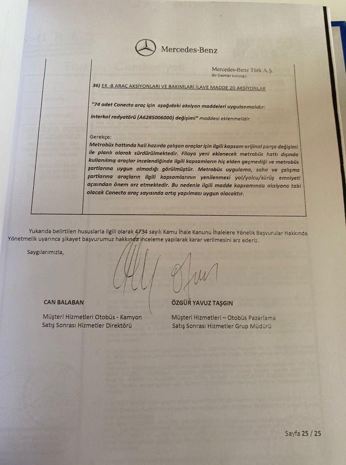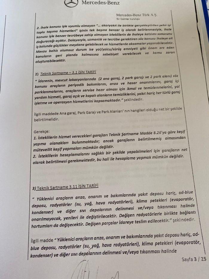 Mercedes-Benz Türk olarak bundan sonra da benzeri süreçlere katılmaya, kazandığımız tüm ihalelerde şimdiye kadar olduğu gibi üzerimize düşeni hakkıyla yapmaya, şeffaf ve dürüst iş kültürümüzle, titizlik ve disiplinle Türkiye için üretmeye devam edeceğiz.” denildi.
