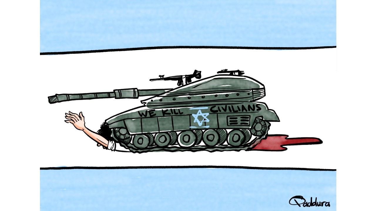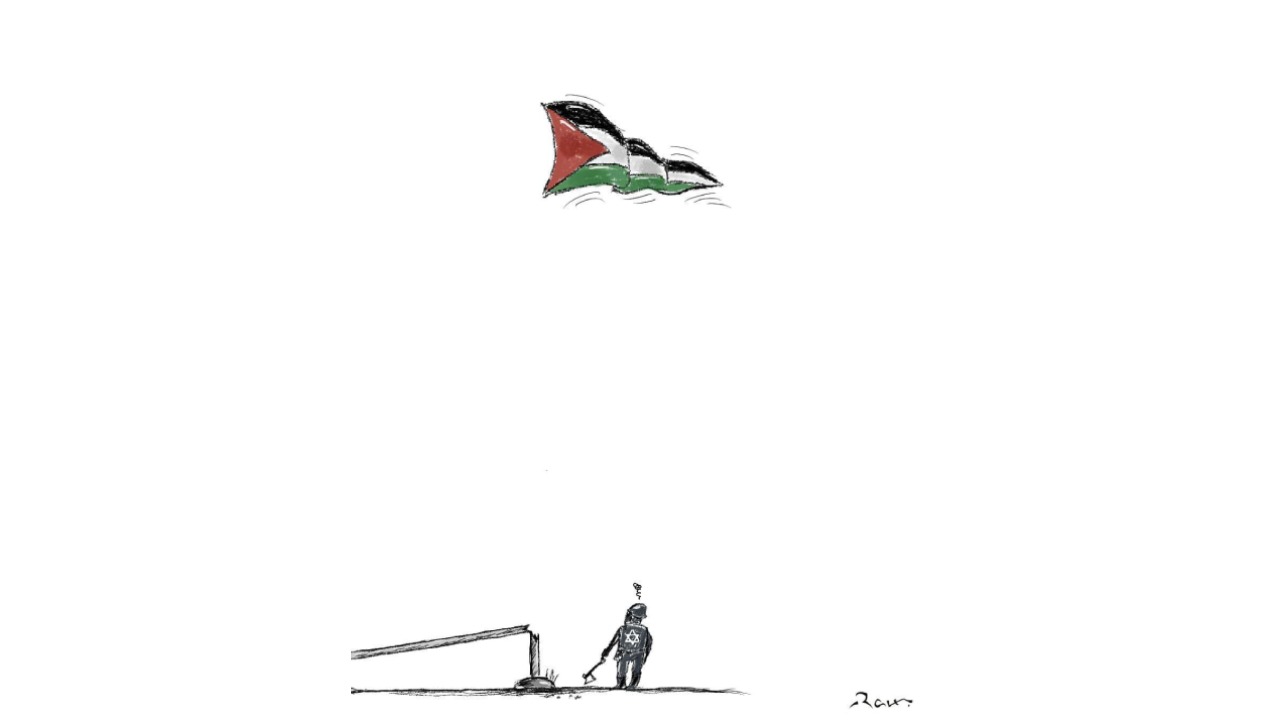 İsrail bayrağını yorumlayan karikatürist Ahmad Qaddura, Davud Yıldızı`nın yerine tank koymuş. Qaddura`ya göre yıldız anlamını çoktan yitirmiş.