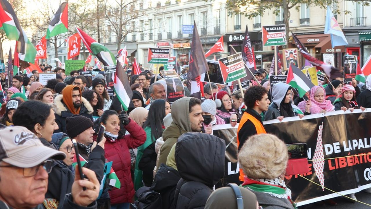 Filistin destekçileri, yerel saatle 18.30'dan itibaren Paris'in ünlü Cumhuriyet Meydanı'nda toplandı.