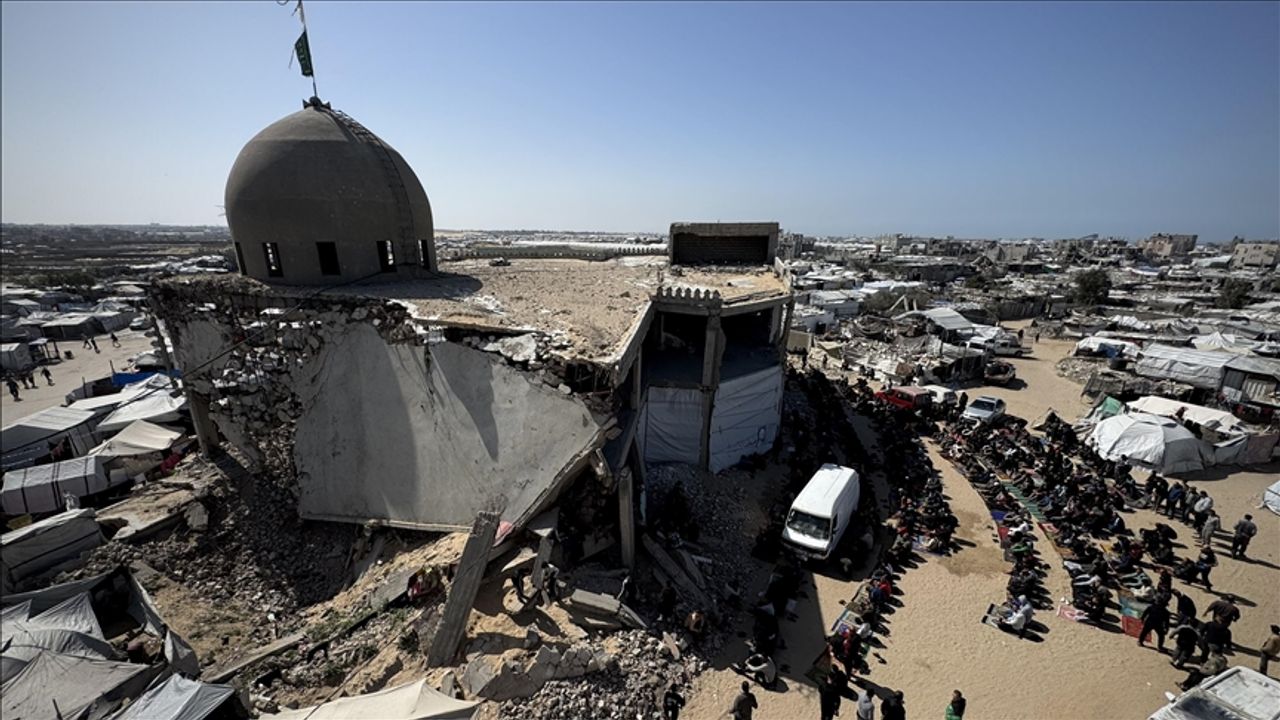 Sivil tesislerin büyük yıkıma uğradığı Gazze'de Müslümanlar, yıkılan camilerin enkazında, kısmen hasarlı camilerin çatlak duvarları arasında veya derme çatma çadırlarda ibadet etmek zorunda kalıyor.