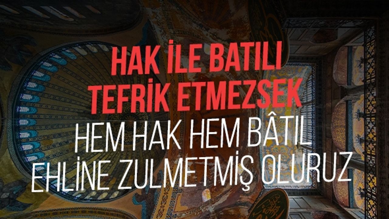 Hak Bir Sen olarak Ayasofya’nın açılması sürecinde bazı eylemlere iştirak ettiniz, destek verdiniz. Üstad Necip Fazıl, “Ayasofya açılacak… Hem de öylesine açılacak ki, kaybedilen bütün manalar, zincire vurulmuş kan revan içinde masumlar gibi, ağlaya ağlaya, üstünü başını yırta yırta onun açılan kapılarından dışarıya vuracak!.. Öylesine açılacak ki, bu millete iyilik etmiş sanılan kötülerle, kötülük etmiş sanılan iyilerin gizli dosyaları da onun mahzenlerinde ele geçecek…” Keramet çapında bir tesbit… Önce Mehmet Boynukalın, şimdi Mustafa Demirkan ve müşterek nokta Ayasofya… Bu hususta neler söyleyebilirsiniz?
