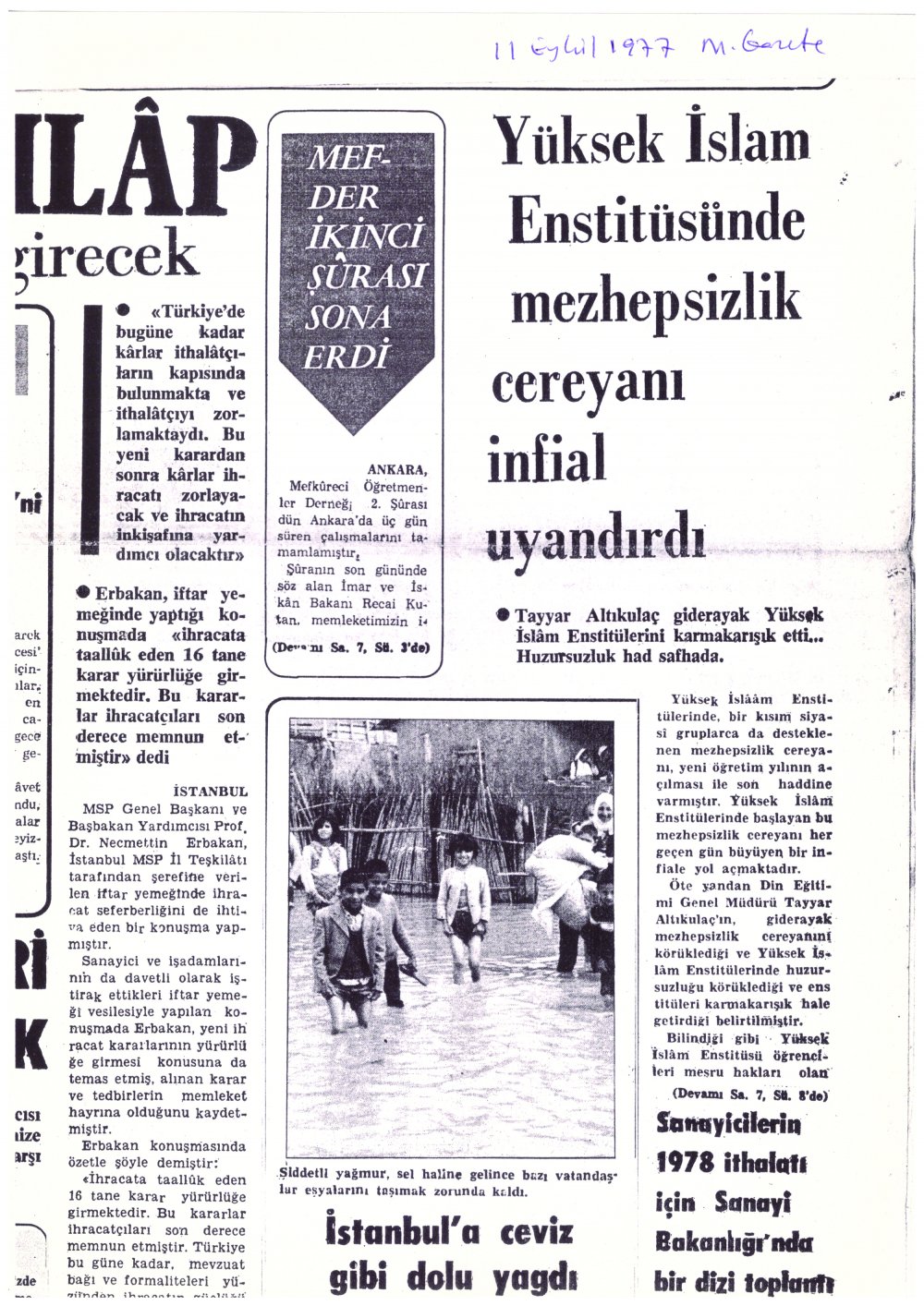Yüksek İslâm Enstitüsü öğrencileri Yüksek İslâm Enstitüleri’nin İslâmî İlimler Akademisi’ne dönüştürülmesini istiyordu. Bu şiddetle arzu edilen bir şeydi; fakat o dönem koalisyon hükümetleri vardı. Meclis’teki siyasî didişmeler nedeniyle bir türlü sonuç alınamıyordu. Öğrencilerin sesine cevap verilmeyince toplu boykot kararı alındı. Diğer üniversitelerde de boykotlar söz konusuydu. Ben bu karara şiddetle karşı çıktım. Eylemin akıbetinden endişeliydim. Çünkü memlekette asayiş yoktu; anarşi hâkimdi. Bu nedenle boykota taraftar olmadım.
