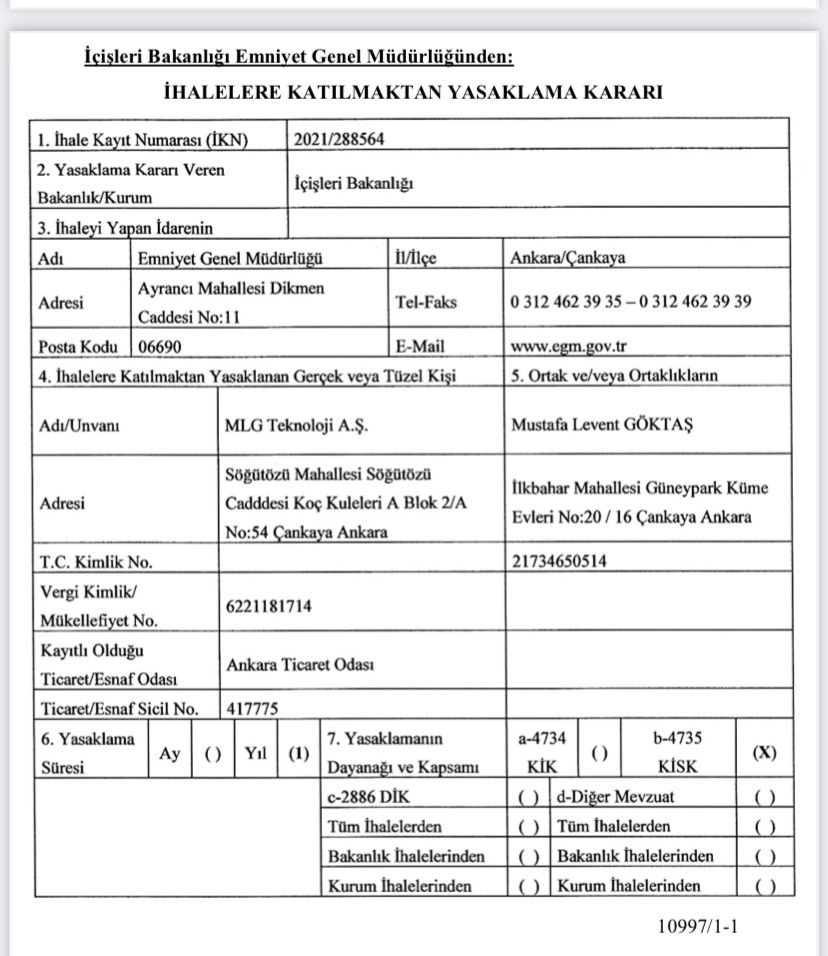 Yeni alınan bilgilere göre İçişleri Bakanlığı’ndan Levent Göktaş’ın şirketine ihalelere katılma yasağı getirildi.