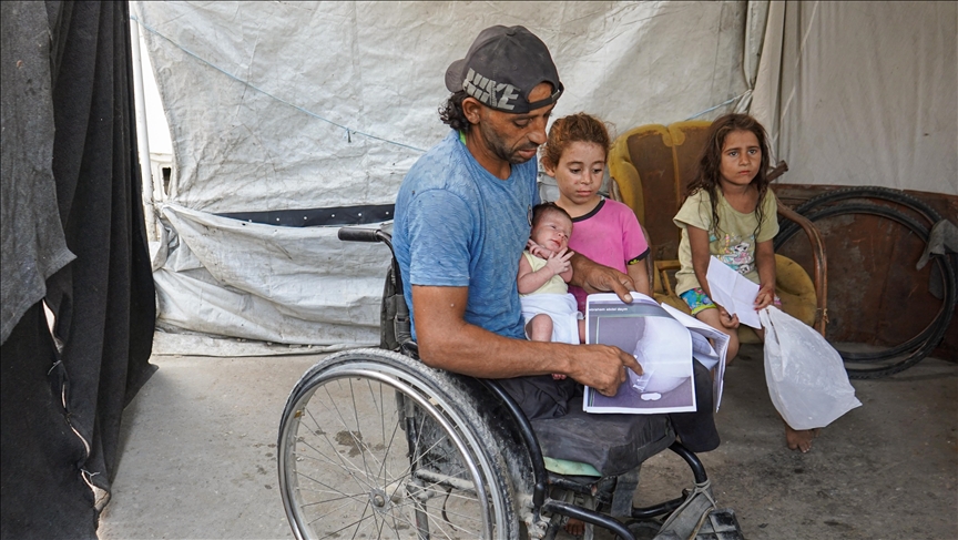 İsrail saldırılarında iki bacağını kaybederek tekerlekli sandalyeye mahkûm kalan 37 yaşındaki İbrahim Abduddayim, çocuklarını doyurmak için yardım dağıtım noktalarına gitmek zorunda kalıyor. Bir kutu konserve ya da bir kilo un uğruna ölümle burun buruna geldiğini ifade eden baba, çoğu zaman çocuklarına yemek bulamadığını ve aç bırakmamak için tuzlu su içirmek zorunda kaldığını söyledi. Yeni doğan kızını hastaneden almakta dahi tereddüt ettiğini belirten Abduddayim, bebek için gerekli bakım ve malzemelere ulaşamadığını dile getirdi.