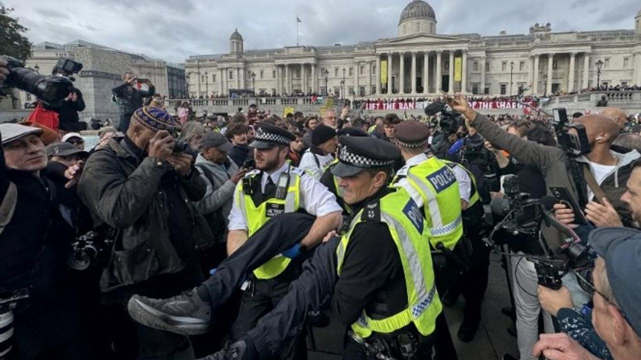 Londra Metropolitan Polisi, pankart tutan diğer eylemcileri de aynı gerekçeyle gözaltına alırken, bazı protestocular, soruları yanıtlamaktan ve hareket etmekten kaçındı. Polis, bu eylemcileri taşıyarak gözaltına aldı.