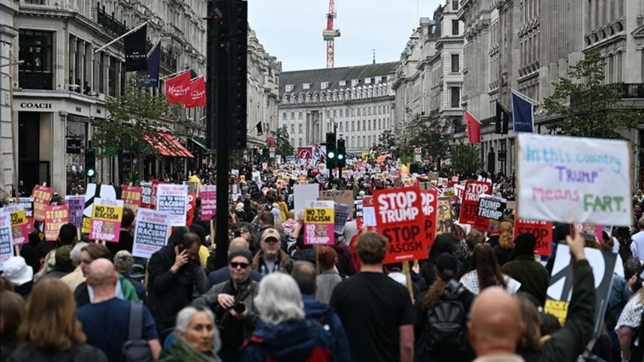 Göstericiler, İngiltere'ye 2 günlük resmi ziyaret düzenleyen Trump'ın, iklim, göç, uluslararası ilişkiler ve Gazze konusundaki tutumunu protesto etti.
