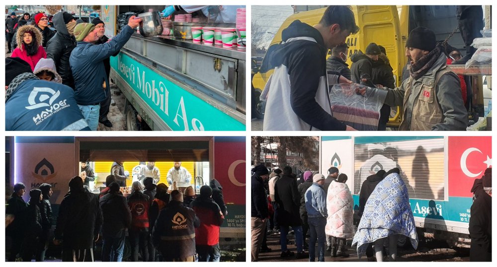 İslami yardım kuruluşları aş evi kuruyor, yiyecek içecek dağıtıyor, enkazlara giriyor, depremzedelerin yaralarını sarıyor.