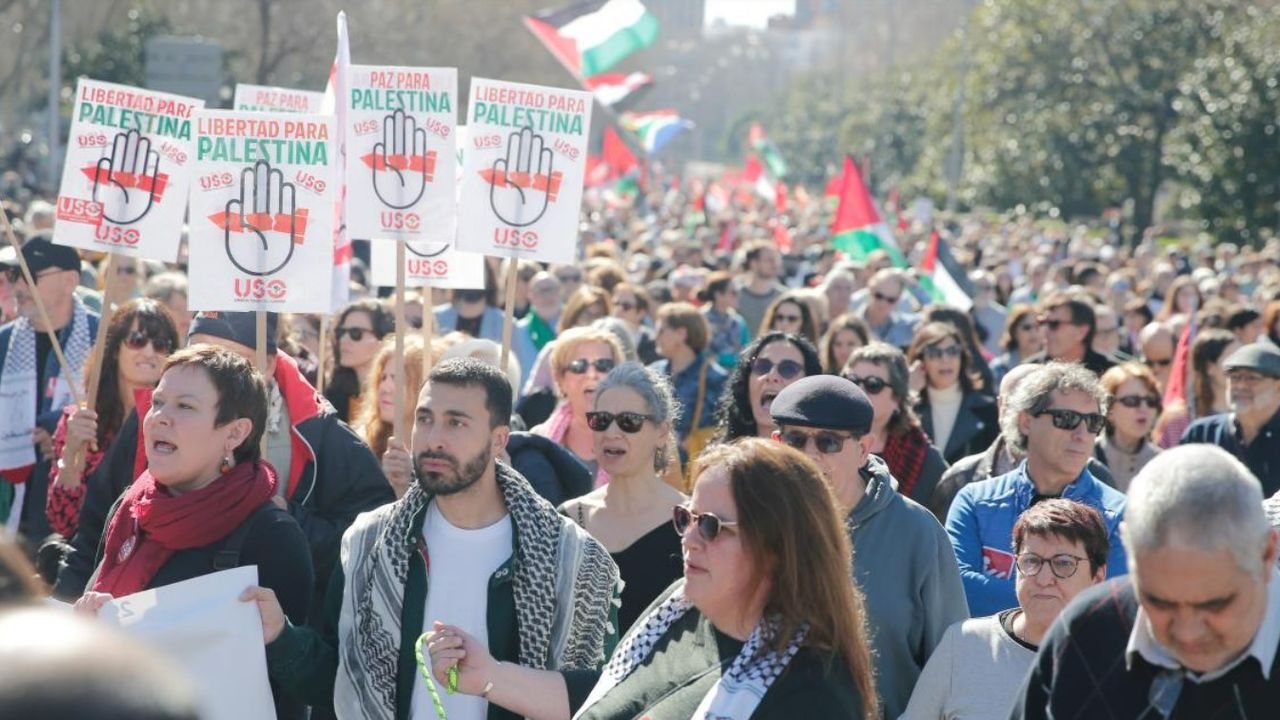 Filistin'e destek veren bazı sivil toplum kuruluşlarının çağrısıyla yapılan gösterilere katılan İspanyollar, İsrail'e silah ambargosu uygulanması, İsrailli şirketlerin boykot edilmesi ve İsrail ile tüm ilişkilerin kesilmesini istedi.