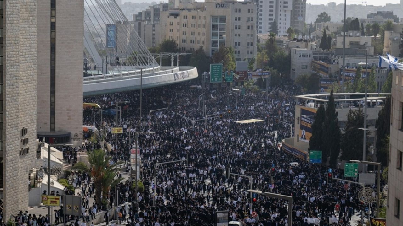 İsrail'de Haredi kesimi askerlikten muaf tutacak bir yasa talep eden ve zorunlu askerliğe karşı çıkan on binlerce kişi, İsrail'in birçok bölgesinden, Batı Kudüs'teki Yitzhak Navon tren istasyonunda toplanmaya başladı.
