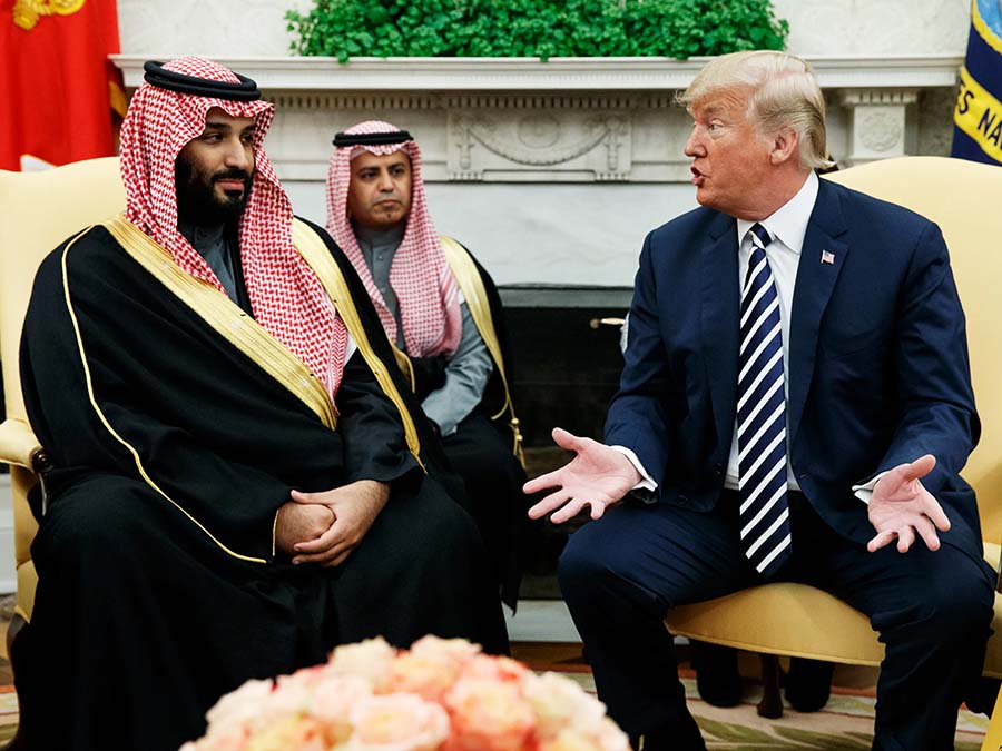 Eski ABD Başkanı Donald Trump 2017’de göreve geldiğinde ilk yurtdışı ziyaretini Suudi Arabistan'a yaptı. Trump, “ABD tarihinin en büyük silah anlaşmasını” MbS ile imzaladı. Reuters haber ajansı, 6 milyar dolar değerinde 150 Blackhawk tipi helikopterin de anlaşmaya dahil olduğunu açıkladı. Suudi petrol devi Aramco'nun CEO'su Amin Nasser, 11 Amerikan şirketiyle 50 milyar dolarlık bir dizi anlaşma imzalanacağını söyledi.