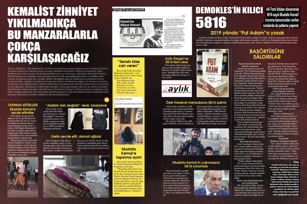 2019 yılında Aylık Dergisi’nin eski yazı işleri müdürü Mahmut Bilal İnci’ye, dergide “Ahbese lanet olsun” denildiği için 5816 sayılı kanundan dolayı bir yıl hapis cezası verildi.