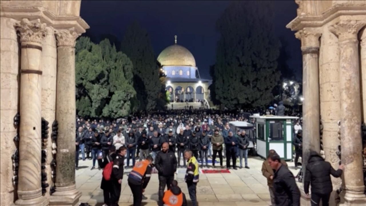Haberde, yatsı namazı ve daha sonra teravih namazında saf tutmak için 80 binden fazla kişinin Mescid-i Aksa'da bir araya geldiği aktarıldı.
