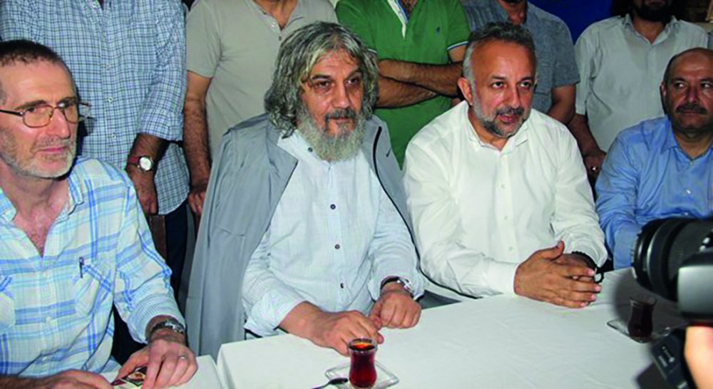 (Kazım Albayrak, İbda Mimarı Salih Mirzabeyoğlu ve Av. Hasan Ölçer/ Mirzabeyoğlu tahliye olduktan sonra basın açıklaması yapmadan evvel)