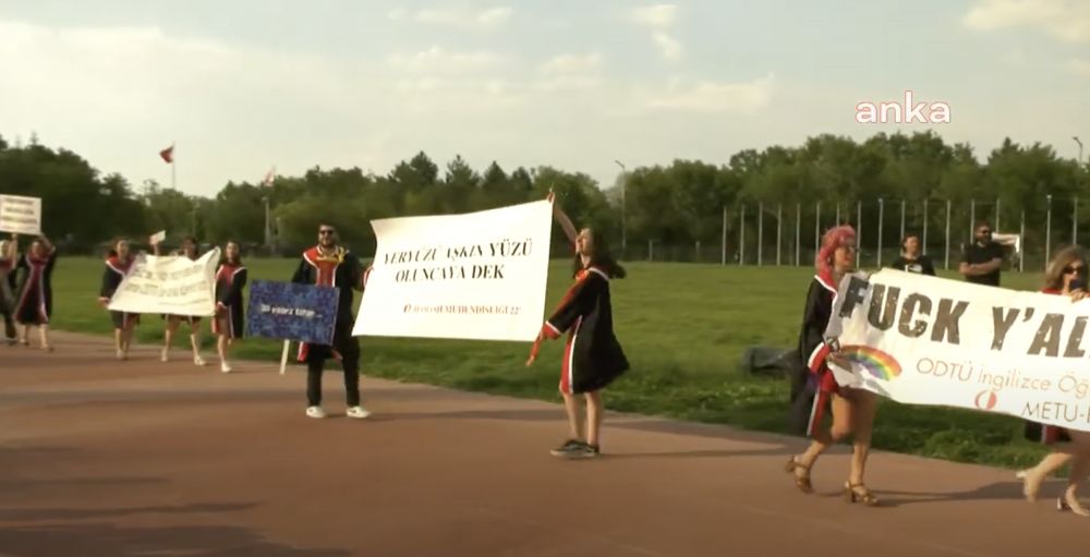 Açılan pankartlar da gösteriyor ki; ne özgün bir cümle ne orijinal bir söz ne de hakkıyla okuduğuna dair bir emare mevcut. Mezuniyet töreni boyunca da en çok göze çarpan, LGBT bayrakları ve destekçileri. İnsanlığın karşısında en büyük tehlike olarak duran bu sapkınlık ODTÜ gibi üniversitelerde toplumun zihnine enjekte ediliyor.