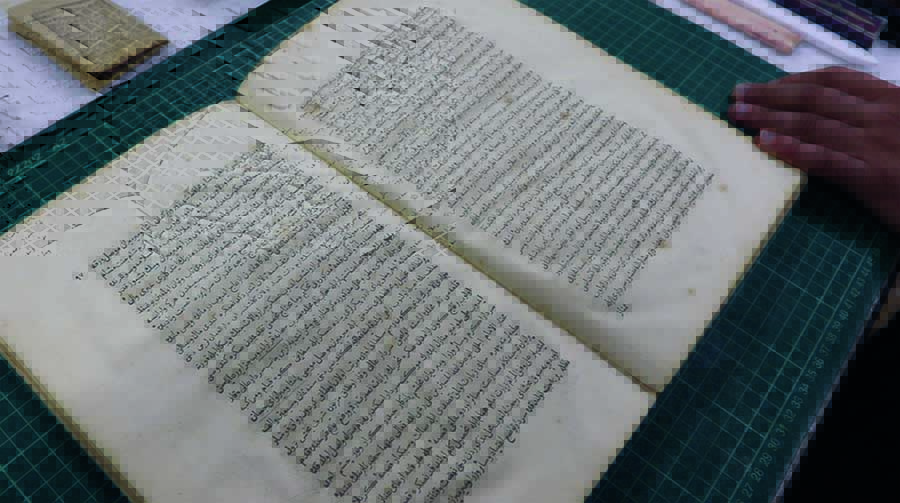 Kanuni’nin Cuma Selamlığının güzel bir tekrar baskısı var. Viyana ekolünden yapılmış bir baskısı. En çok heyecanlandıran ise Endülüs yazması gelmişti restorasyon için. Kâğıtları çok güzeldi. Endülüs Mağribisi tarzında yazılmış bir tarzdaydı. Diğer Mağribi hatlarından daha yumuşak ve hassastır bu tarz. Bu zamana kadar yaptığım en eski kitap buydu. Safevi döneminden gelme eserler vardı. Memlük döneminden gelme eserler aynı şekilde. Memlük döneminden gelen eserleri çok beğeniyordum.