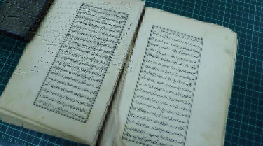 Bizde matbaa har baskısı denilen yöntemle İbrahim Müteferrika’nın çalışmalarıyla başlıyor. İlk başta Gutenberg matbaayı keşfetti deniliyor fakat ilk başta Çinliler keşfediyor. Tahtalar oyularak harfler, kelimeler hazırlanıyor. Onun üzerine mürekkeple kâğıt üzerine baskı yapılarak hazırlanıyor. Çinliler de bunu fazla kullanmıyor. En fazla Uygurlar kullanıyor. Dönemin tarihçisi Uygurların hepsinin evinde kütüphane vardı diyor. Dini eserlerin hepsi basılmıştı. Hâlâ onların baskı yöntemiyle hazırlanmış örnekleri de mevcut. Gutenberg bu işi metal üzerine döktürüyor ve Latin harflerinin az olması dolayısıyla daha rahat yapabiliyor. Müteferrika da bu yöntemi kullanıyor; harfler yan yana getirilerek kelimeler oluşturuluyor ve harf baskısı yapılıyor. Müteferrika’nın bu stilde yapması bizim topraklarda pek sevilmiyor. Yazı karakteri halkın gözüne güzel gelmiyor. Arap harfleri estetik ve akışkandır, ama Müteferrika’nın stilinde bu akışkanlık yok. Ondan sonra taş baskı denilen bir yöntemle basılmaya başlanıyor. Müteferrika’nın harf baskısı beğenilmediği için İran da 1790 yıllarında matbaaya direkt taş baskı ile başlar. Taş baskı; taşın üzerine muhakkakların yağlı mürekkeple yazıları işlemesinden meydana geliyor. (Fotoğrafta gördüğünüz taş baskı da onlardan biri. Taş baskı da aynı el yazması gibi.)