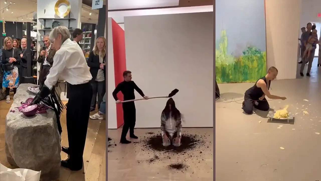 Sosyal mecralara düşen görüntülerde; bir "sanatçının" hınçla tereyağını tokatladığı, bir diğerinin ise elindeki kürekle izleyicilerin üzerine toprak savurduğu anlar yer aldı. Başka bir mecrada ise Marie Caldera’nın elinde keskin bir bıçakla kırmızı lahanayı doğraması "performans sanatı" olarak sunuldu. "Modern sanat" ambalajıyla servis edilen bu görüntüler, sanat ile basit provokasyon arasındaki çizgiyi bir kez daha netleştirdi.