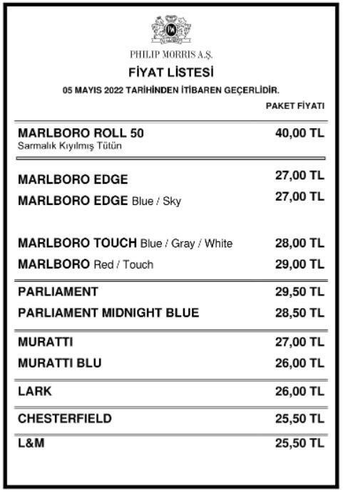 Ocak ve mart aylarında yapılan toplam 6 TL'lik artışın ardından sigara fiyatlarına tekrar zam geldi. Bu sabah her ürüne 2 lira zam geldi. Son zammın ardından en ucuz sigara 25.50 TL. En pahalı sigara ise 40 TL oldu.