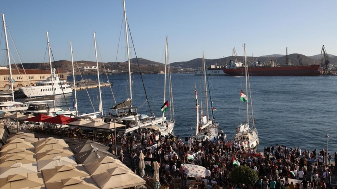 Haberde, Yunanistan'dan hareket eden 'Oksigono', 'Vangelis Pissias', 'Pavlos Fyssas', 'Ahed Tamimi', 'Free Willy' ve 'İlektra' isimli teknelerin Yunanistan'ın Milos Adası'na ulaştığı ve burada uluslararası filonun diğer unsurlarını beklemeye başladığı belirtildi.