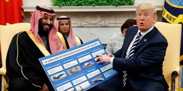 Suudi Arabistan'a her gidişinde kârlı olarak geri döndüğünü kaydeden Trump, "Normalde ABD Başkanları ilk yurtdışı ziyaretlerinde İngiltere'ye giderler ama Suudi Arabistan’a son gidişimde 450 milyar dolar verdiler. Amerikan şirketleri 450 milyar dolar kazandı." ifadelerini kullandı"
