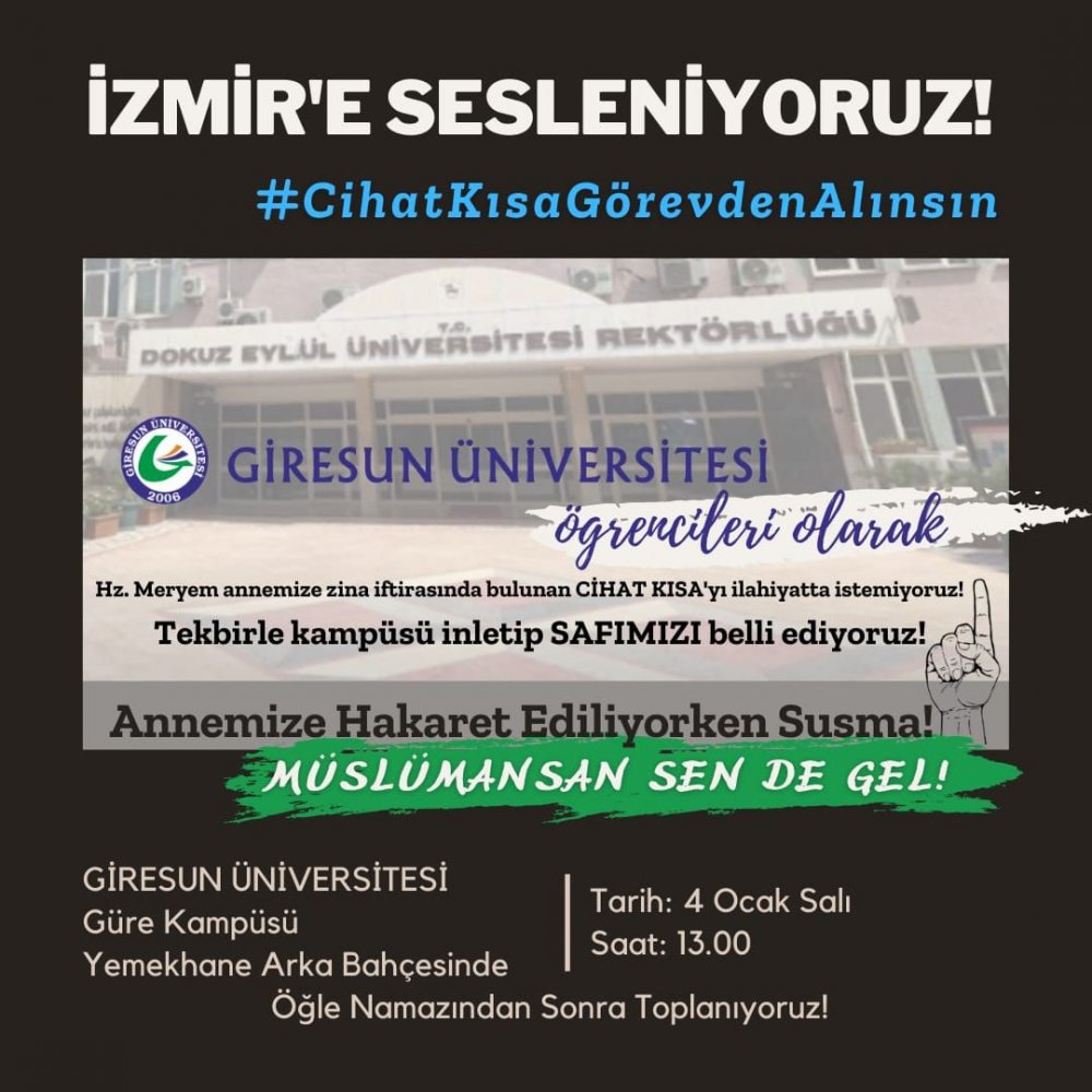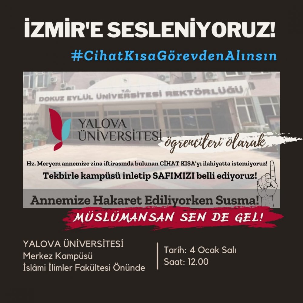 Geçtiğimiz günlerde ders sırasında Hz. İsa ve Hz. Meryem hakkında iftiralarda bulunan Dokuz Eylül Üniversitesi İlahiyat Fakültesi Dekan Yardımcısı ve Din Psikolojisi Anabilim Dalı Öğretim Üyesi Cihad Kısa hakkında tepkiler çığ gibi büyüyor.