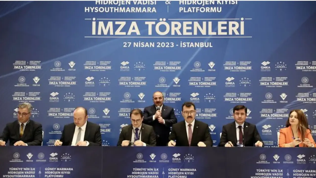Sanayi ve Teknoloji Bakanı Mustafa Varank ve TÜBİTAK Başkanı Prof.Dr Hasan Mandal'ın katıldığı törenle HYSouthMarmara Hidrojen Vadisi Projesi ve Güney Marmara Hidrojen Kıyısı Platformu Güdümlü Projesi'nin imzaları atıldı.