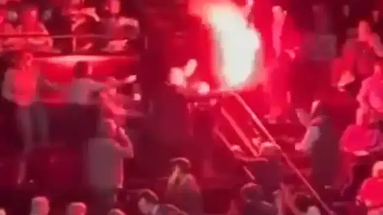 Aktivistler, konser salonunda meşaleler yakarak etkinliği durdurmak istedi. Güvenlik güçleri olaya hızla müdahale ederken, göstericiler salondan çıkarıldı.